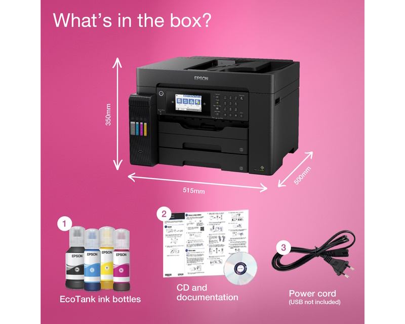 Epson L15150 je profesionalni 4-u-1 A3+ kolor inkjet multifunkcijski uređaj sa EcoTank sistemom dizajniran za srednje kancelarije i radne grupe sa velikim obimom štampe u boji. Kombinuje štampač, skener, kopir i faks u jednom robusnom sistemu bez ketridža.