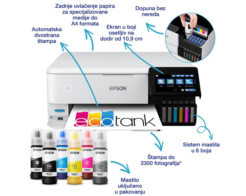 Specifikacije EPSON L8160 EcoTank ITS (6 boja) foto multifunkcijski štampač: